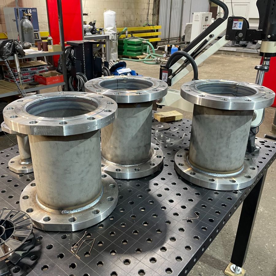 - Изготовление коллекторов из нержавеющей стали диаметром до 114мм методом вытяжки горловин диаметром до 48мм. Приварка патрубков и фланцев осуществляется с применением орбитальной сварки с головкой открытого типа ORBITAL SERVICE OWH 114